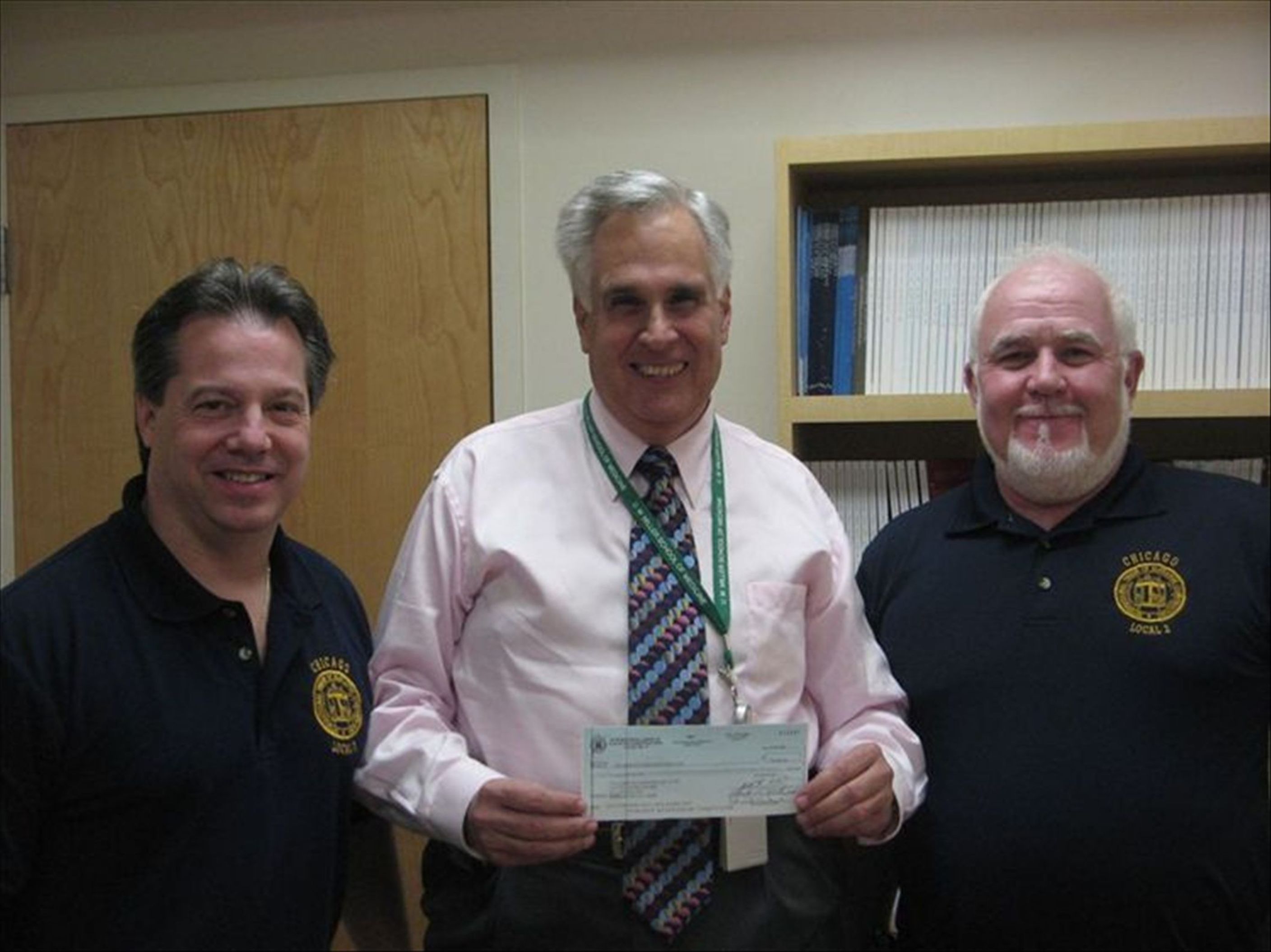 Frank Christensen and John Valone present President and CEO of the Diabetes Research Institue, Robert A. Pearlman, a check for $30,000 raised during our Local 2 golf outing from members and sponsors.